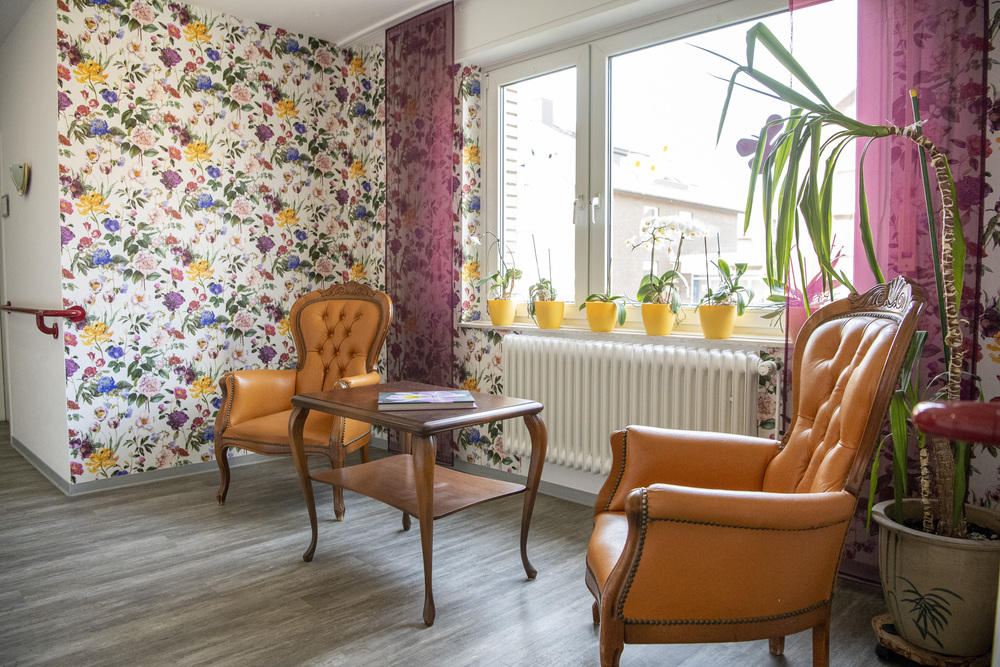 Die warme und herzliche Atmosphäre unseres Hauses spüren Sie bereits in unserem großzügigen und freundlichen Eingangsbereich. Die Mitarbeiter:innen an der Rezeption haben immer ein Lächeln und ein offenes Ohr für Sie. Ein beliebter Treffpunkt ist unsere große Cafeteria mit Terrasse, die auch für gemeinsame Mahlzeiten genutzt wird. Weitere Speise- sowie Gruppenräume befinden sich auf den drei Wohnbereichen. Darüber hinaus gibt es in unserer Einrichtung ein Erinnerungszimmer, das mit alten Möbeln eingerichtet ist, sowie einen Andachtsraum und eine Kegelbahn.