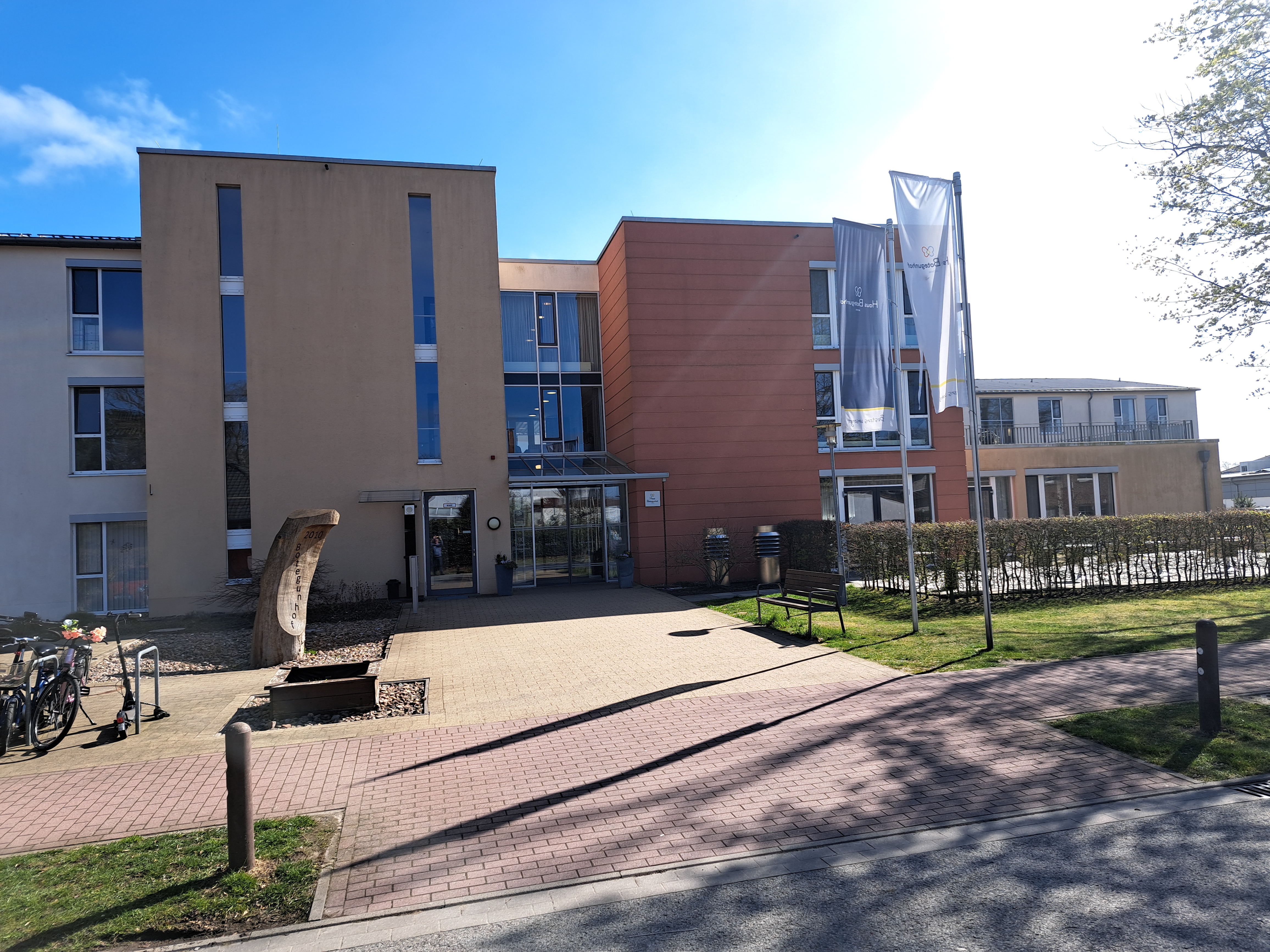 Das 2010 erbaute Haus verfügt über 113 Einzel- und 14 Doppelzimmer (141 Plätze gesamt) auf drei Wohnbereichen. Alle Zimmer haben bodentiefe Fenster, ein eigenes barrierefreies Bad/WC, ein elektrisch verstellbares Komfortbett, Kleiderschrank mit Tresor sowie Kabelfernsehen, Radio- und Telefonanschluss. Erdgeschoss-Zimmer verfügen über eine eigene Terrasse.