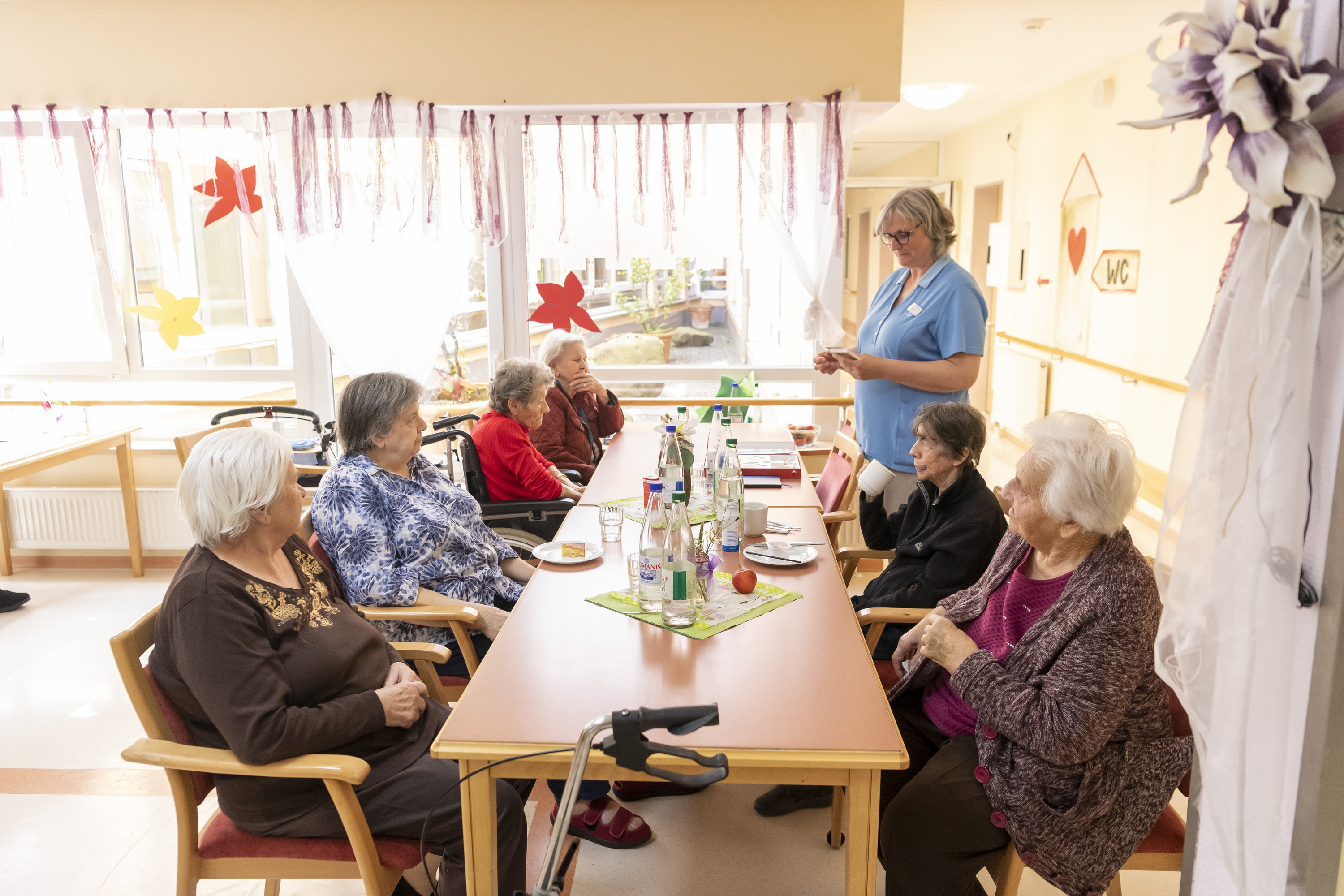 Wer gerne aktiv ist, nimmt an unseren vielfältigen Angeboten teil, die alle auf Ihre persönlichen Fähigkeiten abgestimmt werden. Wir kochen und backen gemeinsam, singen und musizieren oder spielen Bingo. Wer einen grünen Daumen hat unterstützt bei der Pflege unseres Gemüsegartens. Ihre geistigen und körperlichen Fähigkeiten schärfen Sie mit unseren zahlreichen Gymnastikkursen oder Gedächtnistrainings. Zudem finden regelmäßig Gottesdienste bei uns statt und wir erhalten Besuch von örtlichen Kindergärten und Schulen oder der benachbarten Feuerwehr. Eine besondere Abwechslung sind unsere internen Wohlfühlbadetage. Auch der Friseur im Haus freut sich über Ihren Besuch.
