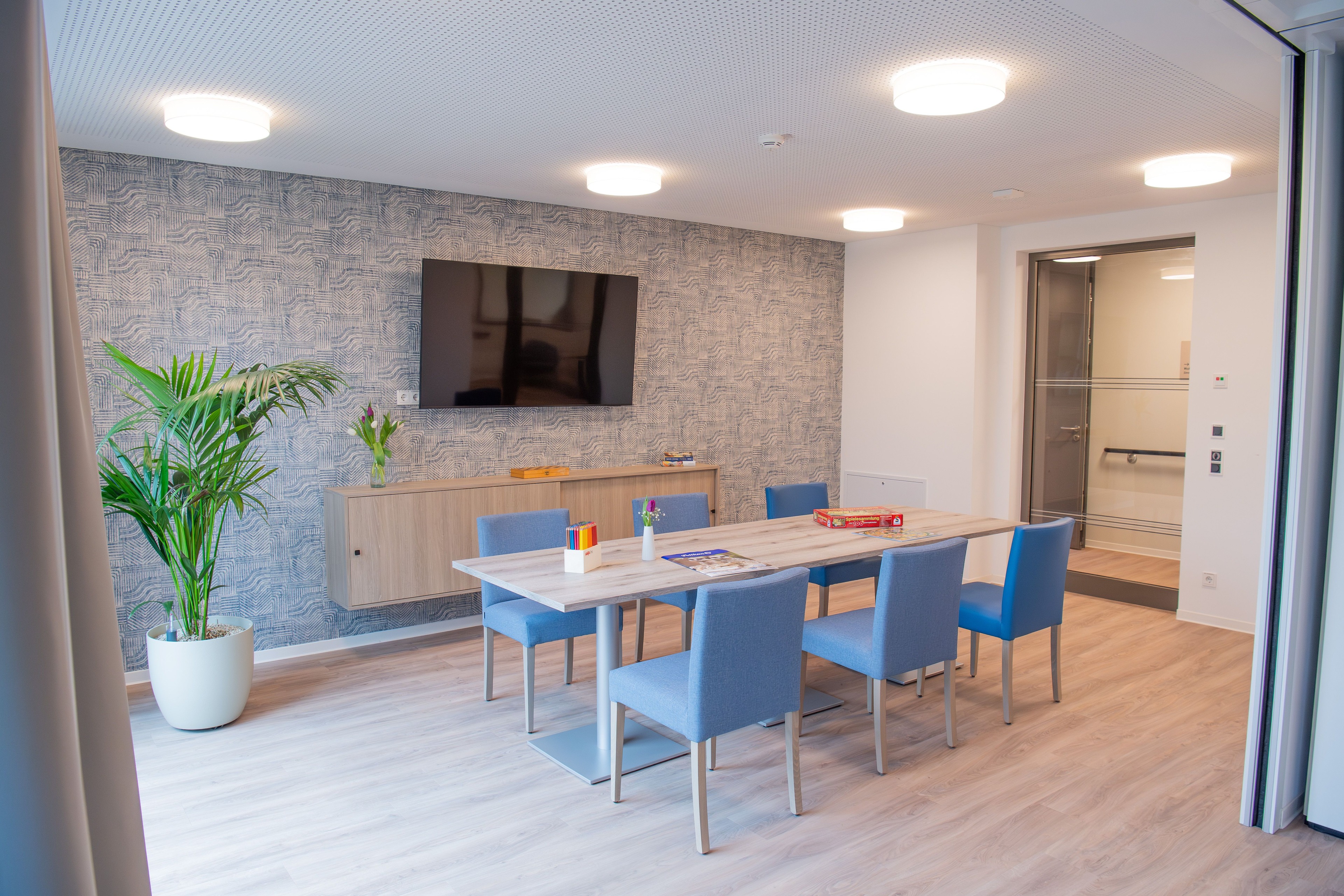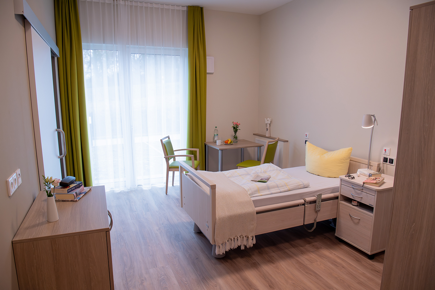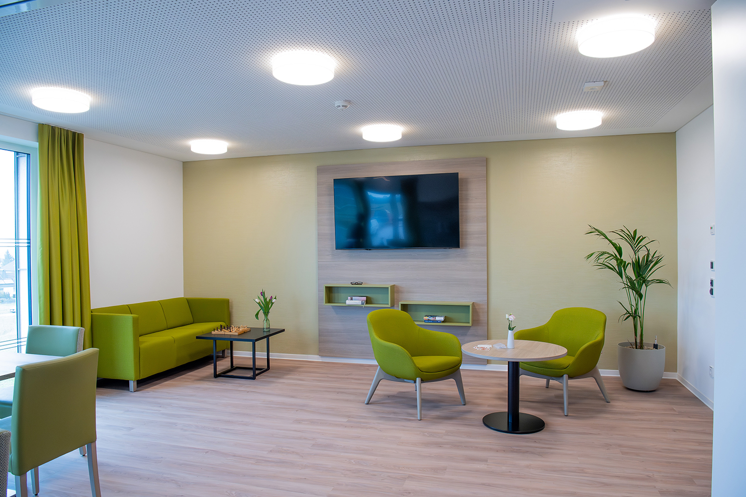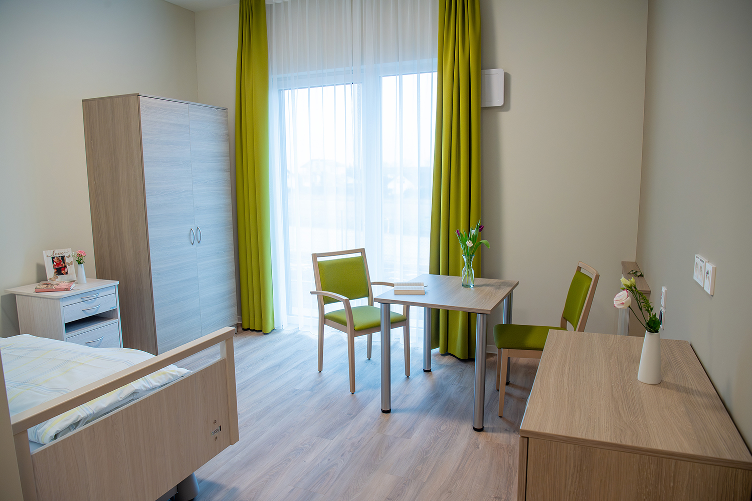 Unsere Einrichtung verfügt über 36 helle Einzelzimmer mit einer Größe ab 18 qm. Einige Zimmer im Erdgeschoss bieten zudem direkten Zugang zu einer kleinen Terrasse – ideal, um frische Luft und Ruhe zu genießen. Alle Zimmer sind barrierefrei gestaltet und können individuell eingerichtet werden. So entsteht ein persönlicher Rückzugsort, der zugleich Geborgenheit und Selbstbestimmung ermöglicht.