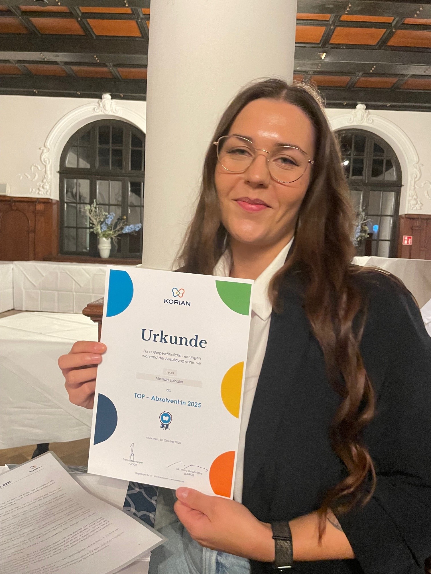 Im historischen Ambiente des Augustiner Stammhauses in München wurden am 30. Oktober 2025 die 15 besten von insgesamt 1800 Auszubildenden von Korian Deutschland geehrt.